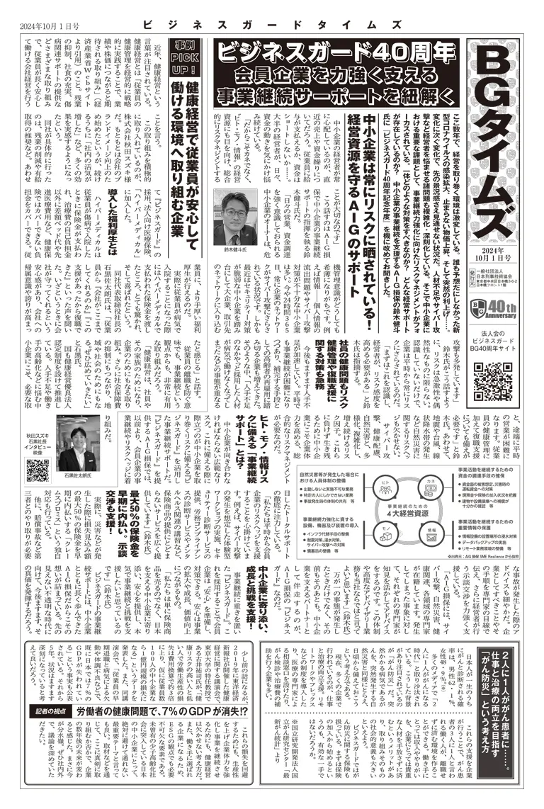 「BGタイムズ」は中小企業が直面する様々なリスクについて、解りやすく解説した記事を掲載した「ビジネスガード」の機関誌です。