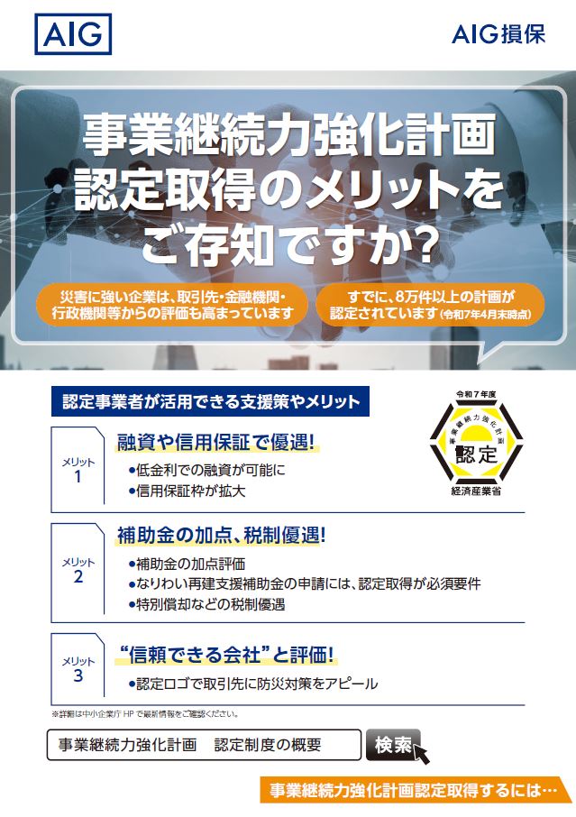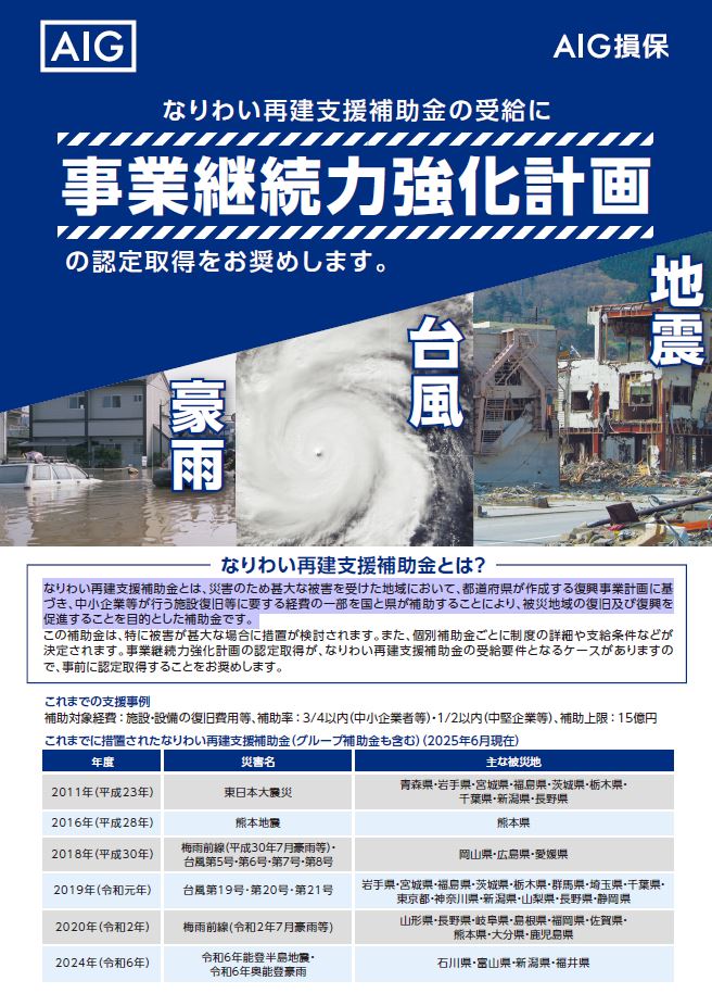事業継続力の強化を、AIG損保とともに。