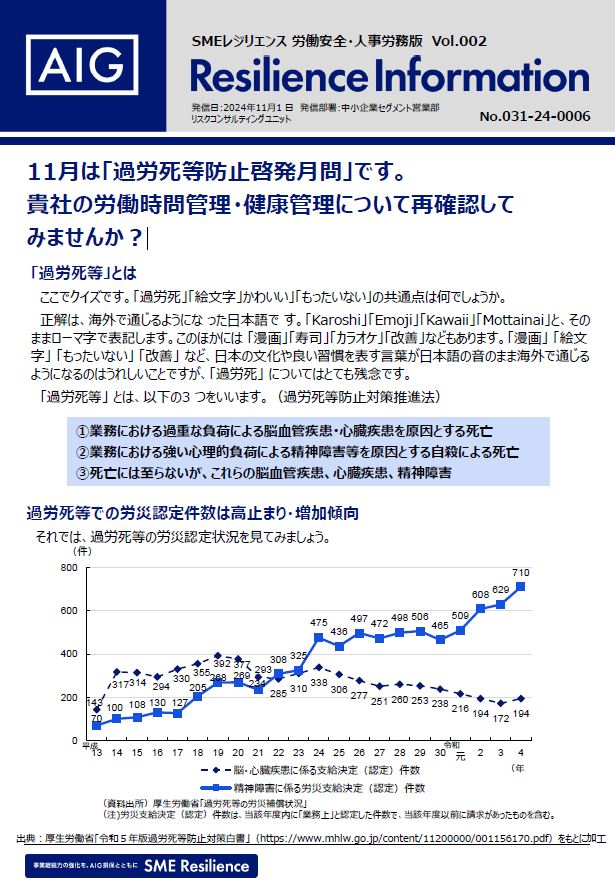 11月は「過労死等防止啓発月問」です。貴社の労働時問管理・健康管理について再確認してみませんか?
